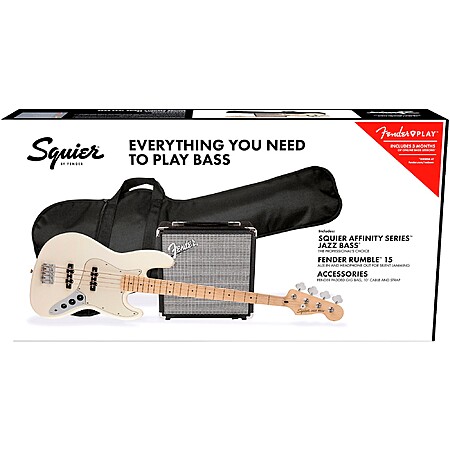 Squier Affinity Jazz Bass Limited-Edition Pack w/ 15W Fender Rumble Electric Bass Guitar Combo Amp & Extra Accessories (Olympic White) $319.99 + Free Shipping