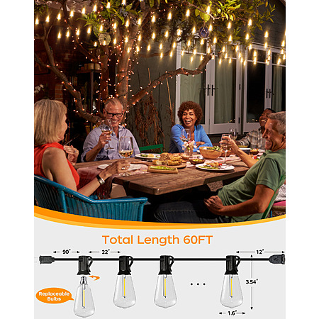 Prime Day: 60ft PARTPHONER LED Outdoor String Lights with 32 Shatterproof ST38 Bulbs $14.99 + Free Shipping