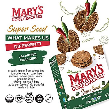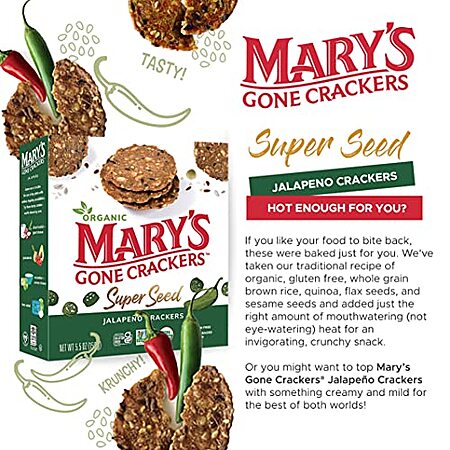 5.5-Oz Mary's Gone Crackers Organic & Gluten-Free Super Seed Crackers (Jalapeno) for $2.7 -