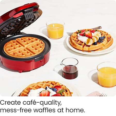 Model: Chefman Anti-Overflow Belgian Waffle Maker w/Shade Selector, Temperature Control Mess Free Moat, Round Iron w/Nonstick Plates & Cool Touch Handle, Measuring Cup Included, Red