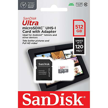 Walmart has 512GB SanDisk Ultra microSD UHS-I Card with Adapter (SDSQUN4-512G-GN6TA) on sale for $19.99. Shipping is free w/ Walmart+ (free 30-day trial) or on orders of $35+.