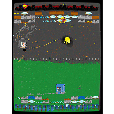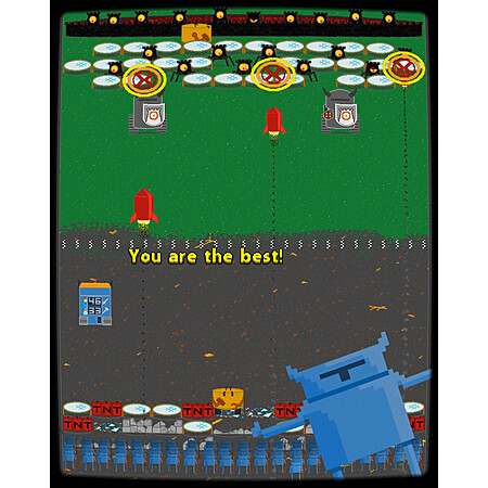 • Breakout game + physics + shooting + building. Use your mouse like in air hockey to kick enemy bombs back into the evil Black Castle! Destroy enemy towers rockets and lasers. Build your base to protect your little dudes - you need them to win