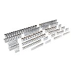 • Contains fifty-two (52) 1/4-inch, sixty-six (66) 3/8-inch and ninety-four (94) 1/2-inch drive sockets