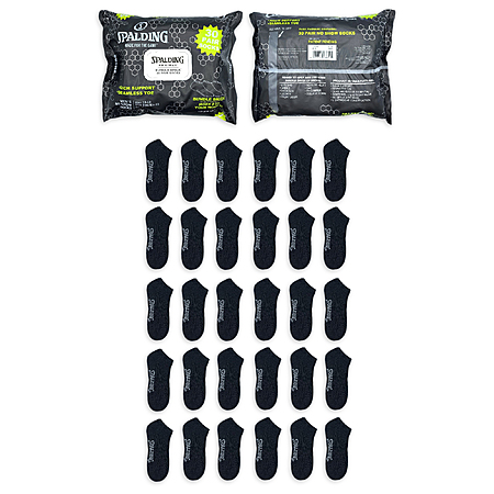 30-Pair Spalding Men's Ankle or No-Show Socks