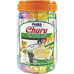First Time AutoShip Orders: 50-Count INABA Churu Cat Grain-Free Treats Puree Tubes (Tuna & Chicken Variety) on sale at 3 for $74.97 - $14.99 when you apply promo code