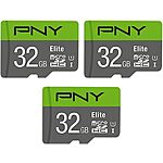3-Pack 32GB PNY Elite Class 10 U1 microSDHC Flash Memory Card (P-SDU32GX3U1100EL-GE) on sale for
