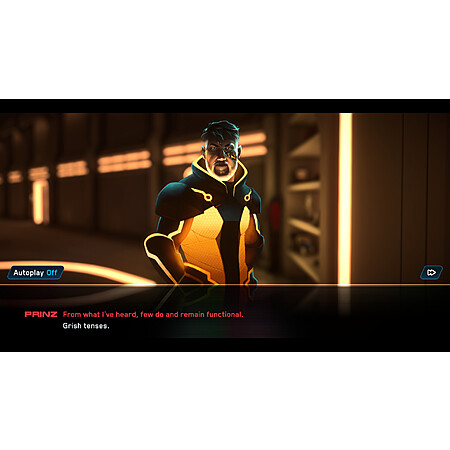 • Something has been taken. Enter a new Grid and forge alliances via visual novel gameplay, uncovering truths through Identity Disc puzzles. Make critical decisions and plot your own course in a world without a creator.