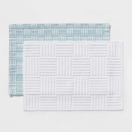 Give your bathroom an elevated, spa-inspired touch with this Performance Plus Cotton Reversible Bath Rug / Runner from Threshold. The rectangular bath mat has a midweight tufted construction with medium pile height that feels soft as you step on it. Made of 100% cotton, the reversible bath mat is designed with a solid-color textured upper surface that reverses to channel ribs in a complementing palette for fun double-sided use. Plus, it's machine washable for easy upkeep.