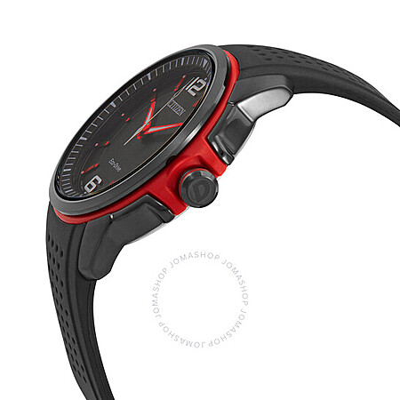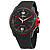 - Black dial with luminous red hands and index hour markers.