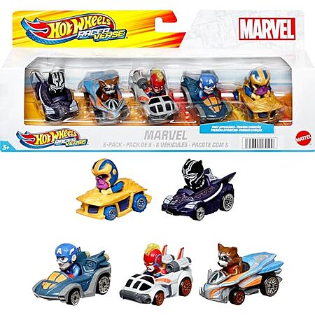5-Pack Hot Wheels Marvel RacerVerse Die-Cast 1:64 Scale Toy Cars with Character Drivers for