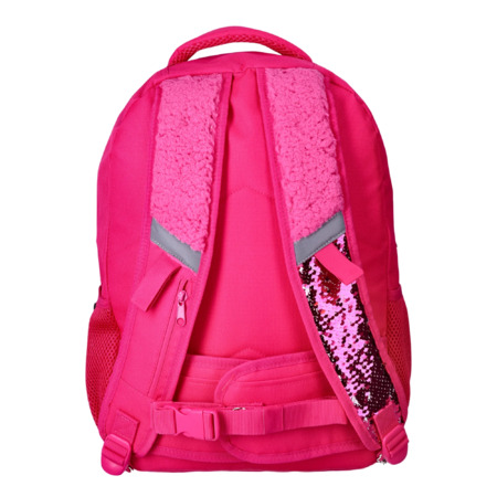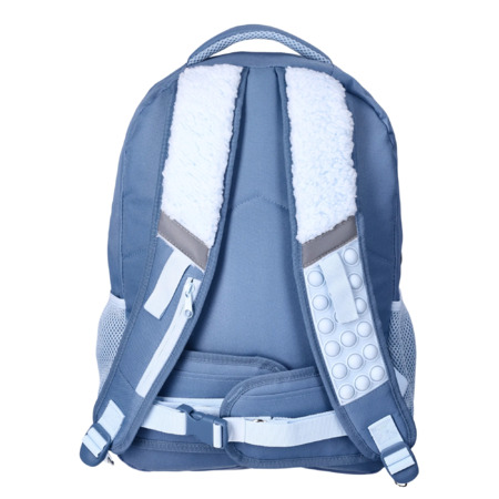 • Adjustable shoulder straps with reflective detail; reflective strip on front panel; flip sequins on shoulder strap for tactile and optical stimulation; tactile teddy fleece on shoulder strap; multiple headphone ports; adjustable compression hip belt; elastic pull loops; chewie on stretchable coil spring stores in zipper pocket when not in use; gel squeeze square toy; pop-it bracelet, fidget spinner; slip pocket; rings on end of webbing straps to attach sensory toys.