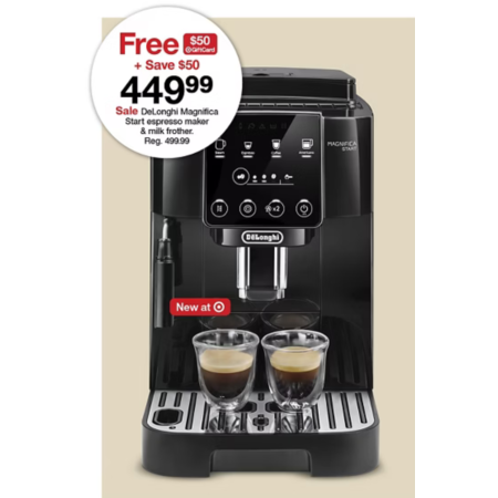 DeLonghi Magnifica Start Espresso Maker with Manual Milk Frothing + $50 Target Gift Card $449.99