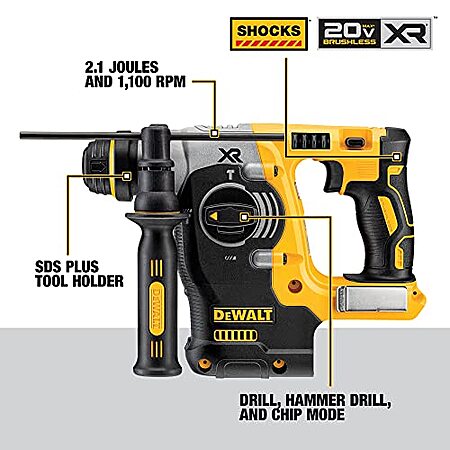 DEWALT 20V MAX SDS Rotary Hammer Drill, Cordless, 3 Application Modes, Bare Tool Only (DCH273B) - $204.28