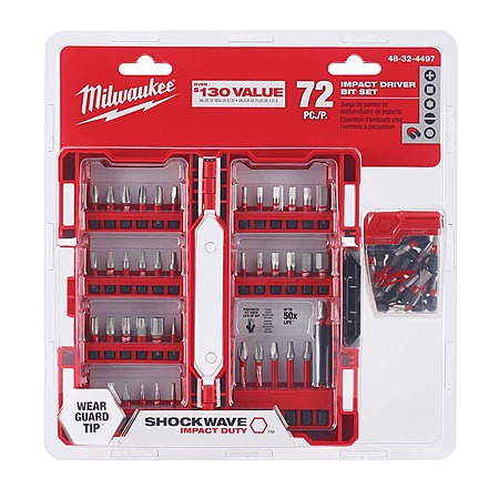 Milwaukee SHOCKWAVE Impact Duty Alloy Steel Screw Driver Drill Bit Set (72-Piece), $19.97, free shipping, Home Depot