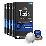 5-Pack 10-Count Peet's Coffee Dark Roast Decaf Espresso Coffee Pods (Decaf Ristretto, Intensity 9) for $23.11 -