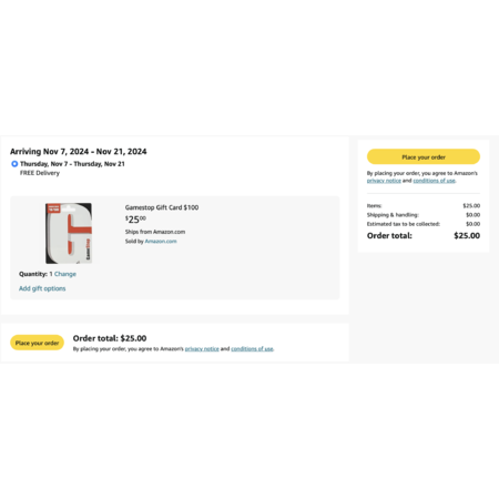 ACI Gift Cards LLC via Amazon has $100 GameStop Physical Gift Card for $25. Shipping is free w/ Prime or on $35+ orders.