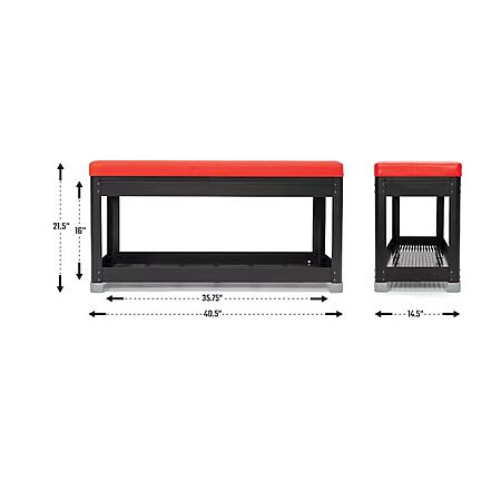 The Craftsman CMXZSAJ94095 Heavy Duty Padded Workshop Boot Bench, reflecting both functionality and aesthetic appeal, brings the perfect blend of durability and comfort to any garage, shop, or workspace. This bench, made from a combination of robust steel and 2-Inch thick foam, not only serves as a comfortable seating solution but also provides an easily accessible storage tray for organizing your essentials. Coated with a resilient powder finish, it boasts a load capacity of 400 lb., while the 2-inch foam ensures optimal cushioning. Designed with Craftsman's dedication to quality, this bench adds an industrial touch to any shop, garage, or man cave.