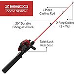 Model: Zebco Dock Demon Spinning Reel and Fishing Rod Combo, 30-inch 1-Piece Fiberglass Fishing Pole, EVA Rod Handle, Size 10 Reel, Powertrain Drag, Pre-Spooled with 6-Pound Zebco Line, Red