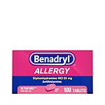 100-Count Benadryl Diphenhydramine HCI 25mg Antihistamine Allergy Medicine for $7.23 -