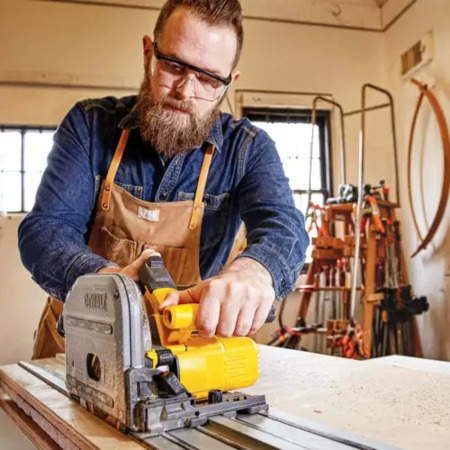 For what it's worth, I had this saw but sold it because the blade change mechanism was such a pain. The main thing it has going for it is the power. It also works fine on other brand tracks and there are powertec tracks that are the same as the dewalt style but cheaper.