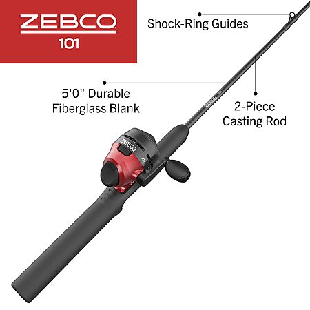 2-Piece Zebco 101 Spincast Reel and Fishing Rod Combo, 5-Foot Size 20 Reel (Black/Red) $9.22 + Free Shipping w/ Prime or on $35+