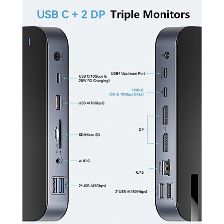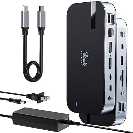 LIONWEI USB4 Docking Station: Dual DisplayPort & USB-C to Triple Monitor, 4K@60Hz/120Hz, 5K@60Hz, 10Gbps USB, SD 4.0, RJ45 Ethernet, 150W Power Delivery