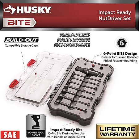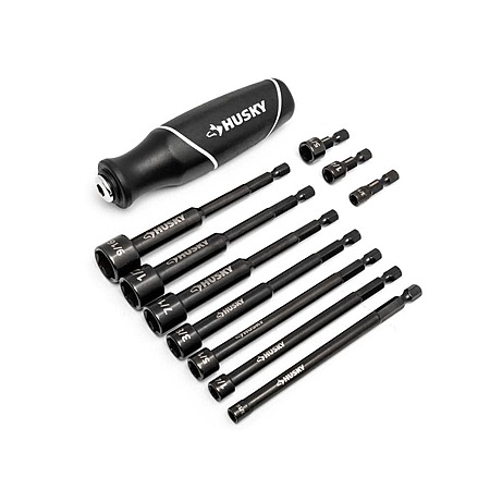 Husky BITE Impact Ready Interchangeable Nut Driver Set with Cushion-Grip Handle (10-Piece), SAE or metric, $19.97, free shipping, Home Depot