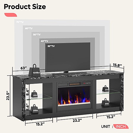 Bestier Modern Electric Fireplace TV Stand (Up to 70" TV) w/ RGB LED Under Cabinet Lights (Various Colors) $198 + Free Shipping