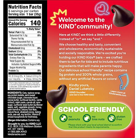 Model: KIND Kids Chocolate Chip Bar, Tree Nut Free, Peanut Free, Gluten Free, Made With Whole Grain Oats, 6.2 oz Box (5 Bars)