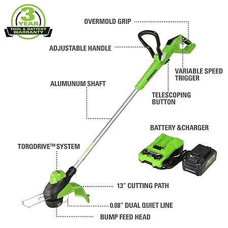 13" Greenworks 24V Brushless Cordless String Trimmer w/ 4.0Ah Battery & Charger
