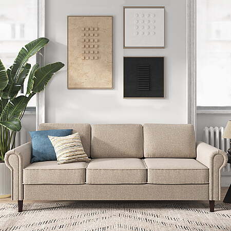 Well, from the real (not given a free product) reviews, it is small, short and firm. About what you would expect from a couch that is $225. Retail prices are a joke.