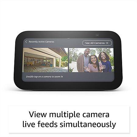 - See more with the built-in camera – Check in on your family, pets, and more using the built-in camera. Drop in on your home when you're out or view the front door from your Echo Show 5 with compatible video doorbells.