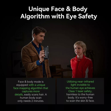 • The face and body mode is equipped with a unique facial mapping algorithm that enables the capture of intricate details, including hair.