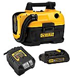 This cordless 20-Volt wet/dry vacuum cleans up spills, debris, dust or other messes that commonly creep up on a job site. This DEWALT vacuum has the capacity to vacuum 2 gallons of wet or dry debris. The integrated flexible, heavy-duty 5 ft. hose is ideal for tough worksite conditions and has the option to attach a crevice tool or wide-nozzle tool (included). This unit comes with a filter that can be rinsed and reused. Battery and charger included.