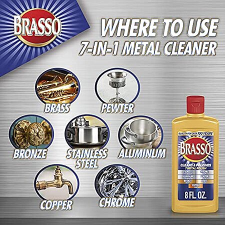 This stuff works. I discover Brasso in the Navy when we had to polish our belt buckles. All sorts of metals will shine right up with a bit of "elbow grease". Meaning…. you apply with a soft cloth, then rub back and forth, round and round, then buff with a clean cloth, to bring the metal to a bright shine. Repeat a needed.