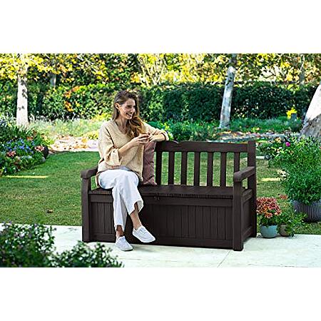 $103.24: Keter Solana Resin Outdoor Patio Storage Bench (70-Gallon Capacity, Brown) at Amazon