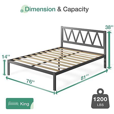 Novilla Metal Platform Bed Frame w/ Headboard (King) $65 + Free Shipping