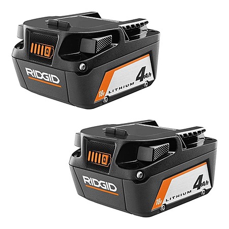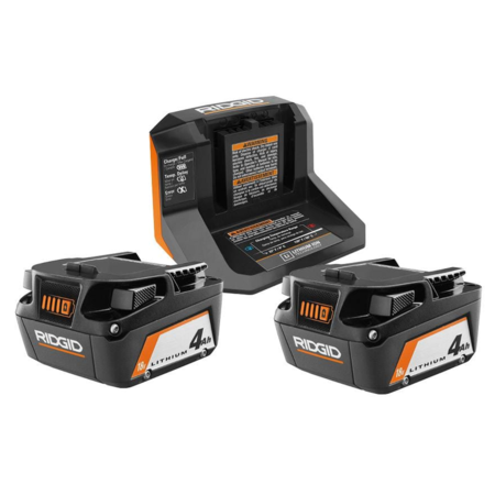 RIDGID 18V Lithium-Ion 4.0 Ah Battery (2-Pack) and 18V Charger Kit AC87004P-AC86093N - The Home Depot $140.00