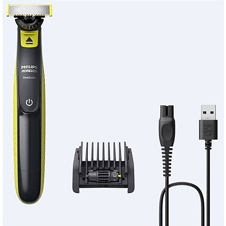 • Includes: OneBlade Handle, 1 360 blade, 1 5-in-1 comb, 1 protective cap, 1 USB-A charging cord (adapter not included).