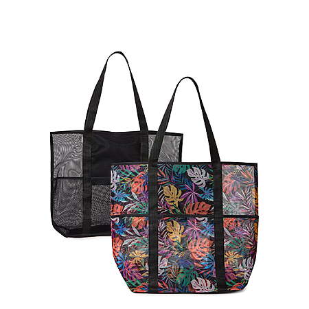 2-Count Time and Tru Women's Mesh Beach Beach Tote Bags (Leaf Print/Black) $5 + Free S&H w/ Walmart+ or on $35+