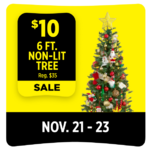 6ft non-lit Christmas tree, $10, Nov 21-23 only, Dollar General