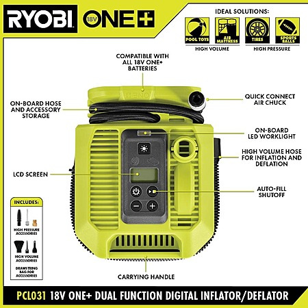 Ryobi One+ 18V Dual Function Inflator/Deflator + Wet/Dry Hand Vacuum $59.97 + Free Shipping