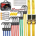 Model: TOOLUXE 50888L Bungee Cords Kit, 36pc Assorted Bungee Cord Hooks Set, Large & Small Loop Rope with Hooks, Outdoor Canopy Ties, Ratcheting Straps, Steel Spring Clamps, Plastic Alligator Tarp Clips