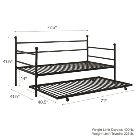 Mainstays Modern Metal Daybed w/ Trundle (Twin, Black) $94 + Free Shipping