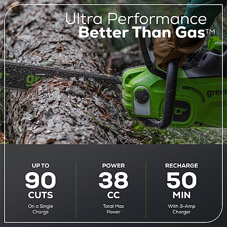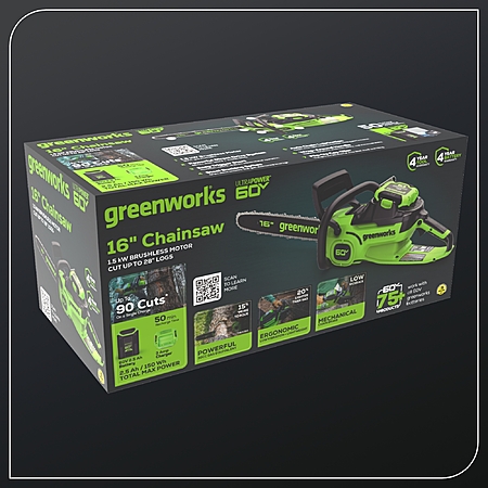 Greenworks 60V 16" Brushless Chainsaw w/ 2.5 Ah Battery & Charger + Bonus Chain
