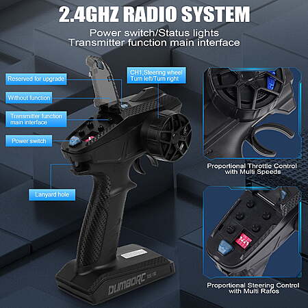 - 6 Channel RC Radio Transmitter with Gyroscope Function: Our racing car is equipped with a 2.4GHZ remote control that can realize one-handed control, easy to operate without difficulty. The RC radio transmitter with reciver perfect used for RC Car Boat crawler,2.4GHz Frequency and 3ms Receiver responses. Stable control your model 400-500M, make good works and protect when it out of control.