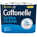 9-Count Cottonelle Toilet Paper Family Mega Rolls (Ultra Clean or Ultra Comfort) on sale for $10 - $2 off w/ one-time purchase coupon (