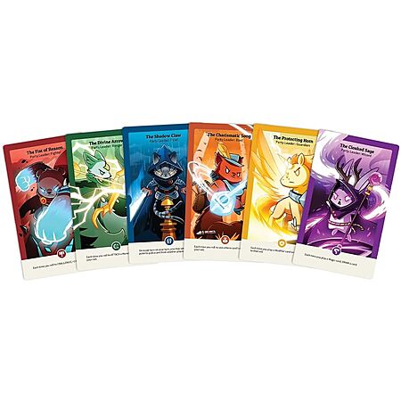 Contains: 1 standard deck of 115 cards, 6 Party Leader cards, 15 oversized Monster cards, 2 six-sided dice, and 6 rules reference cards.