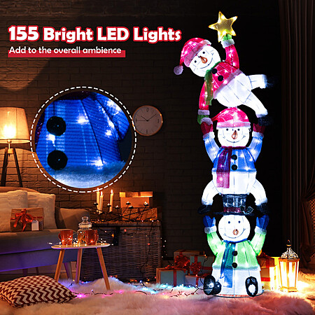 Costway 6' Pre-Lit Stacked Snowman Set with 155 LED Lights and Ground Stakes $88 + Free Shipping