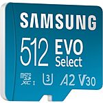 Model: SAMSUNG EVO Select MicroSD Memory Card + Adapter, 512GB microSDXC, Speeds Up to 160 MB/s, UHS-I, C10, U3, V10, A2, Upgrade Storage for Phones, Tablets, Nintendo-Switch, MB-ME512SA/AM